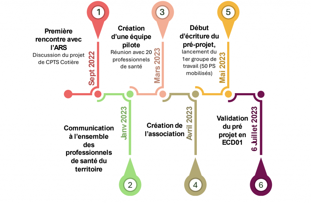 A l’initiative des professionnels de santé, la création d’une communauté professionnelle territoriale de santé (CPTS) au sein de la Côtière est parue évidente. Impulsée par la loi du 24 juillet 2019, le projet CPTS concrétise la volonté des acteurs de santé de la Côtière d’améliorer une coordination et une structuration des soins en répondant aux attentes contextuelles et conjoncturelles d’une population en demande.